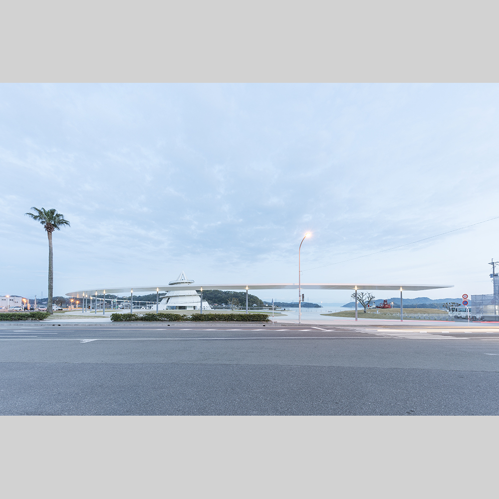 所在地 熊本県宇城市三角町三角浦/主要用途 通路上屋(日除けキャノピー)/竣工 2016年/発注者 熊本県宇城地域振興局/設計 株式会社ネイ&パートナーズジャパン/施工 株式会社大島造船所/建築面積 1,000m2/延床面積 1,000m2/階数 平屋/構造 鉄骨造/工期 2015年7月〜2016年3月