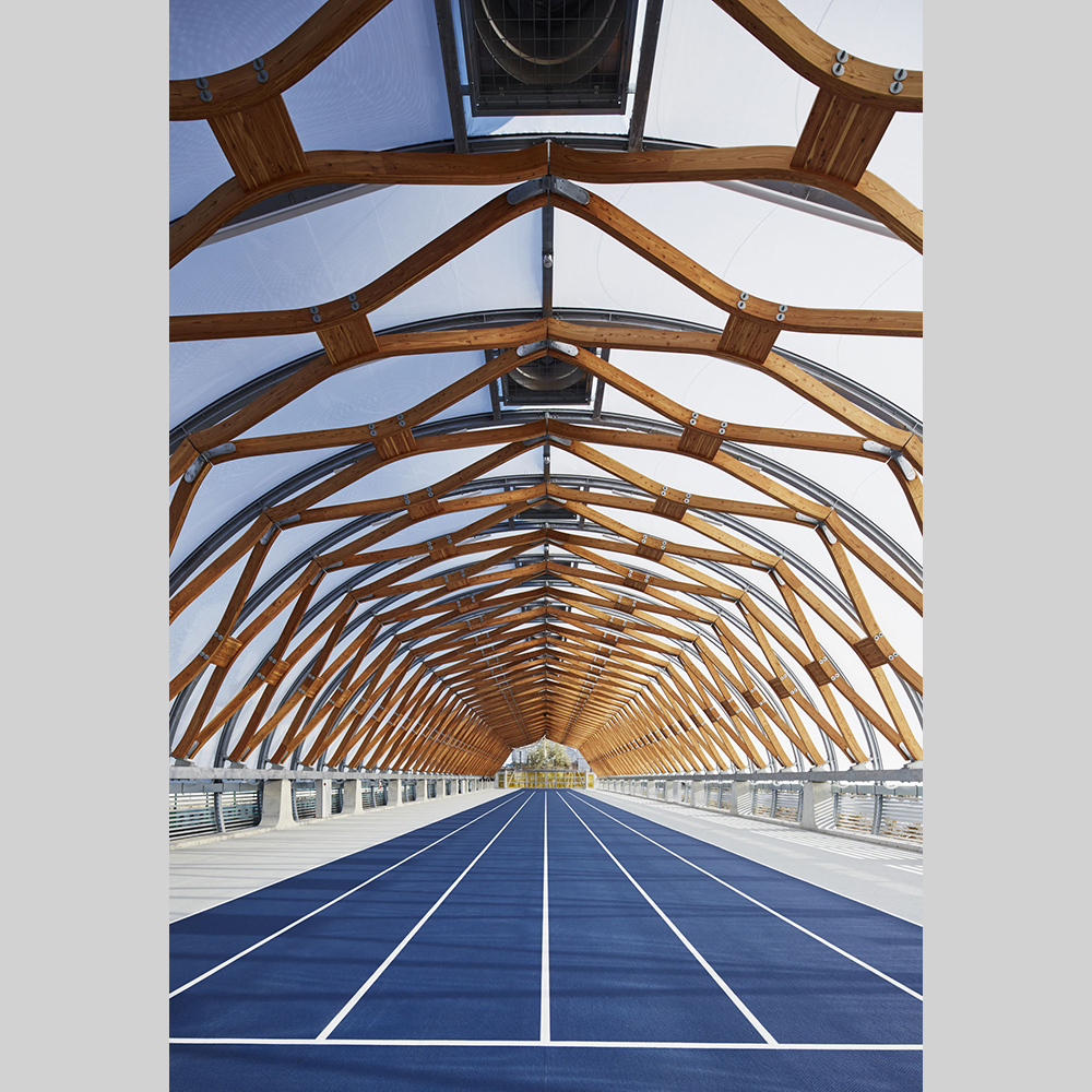 細部にまで構造設計者の意思が貫かれた湾曲集成材による木構造の、軽やかでありながらユニークな存在感と、それを引き立たせるETFEクッションの浮遊感の対比が、清々しい構造美の空間をつくり出している。創意に溢れるふたりの構造家のコラボレーションが高く評価された。