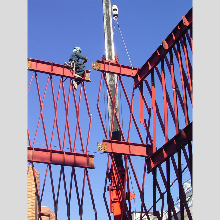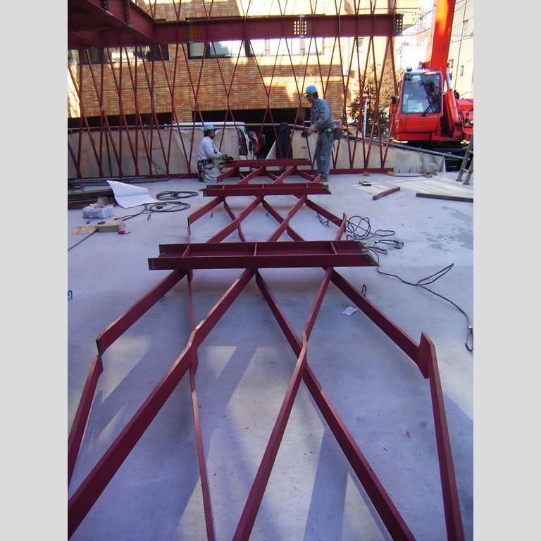 この種の構造で最も注意を払うべきは、座屈の問題である。構造家はこの問題についても慎重に解析を行い、安全性を確かめている。また、建築家および構造家は部材の工場製作、現場での建て方、施工にわたる全工程に注意を払っており、本建物を小品ながら質の高い建築に仕上げるのに、努力を惜しんでいない。
